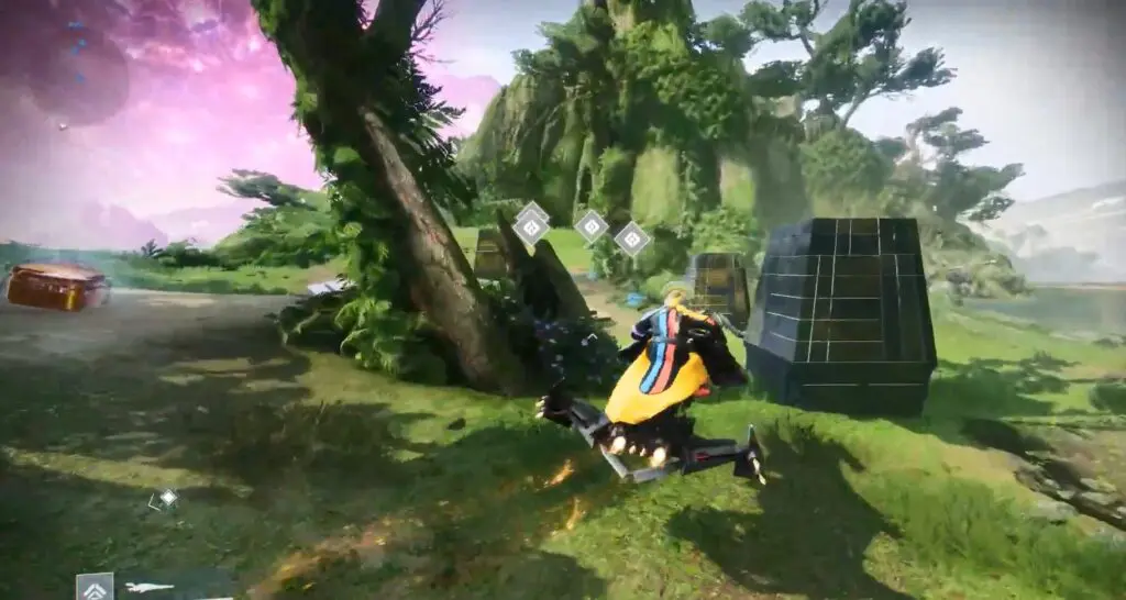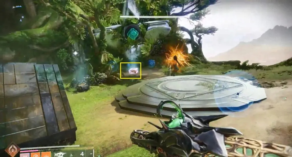 After locating all four ghost shells, enter the round structure to discover four markers as shown in the image, along with a nearby chest.