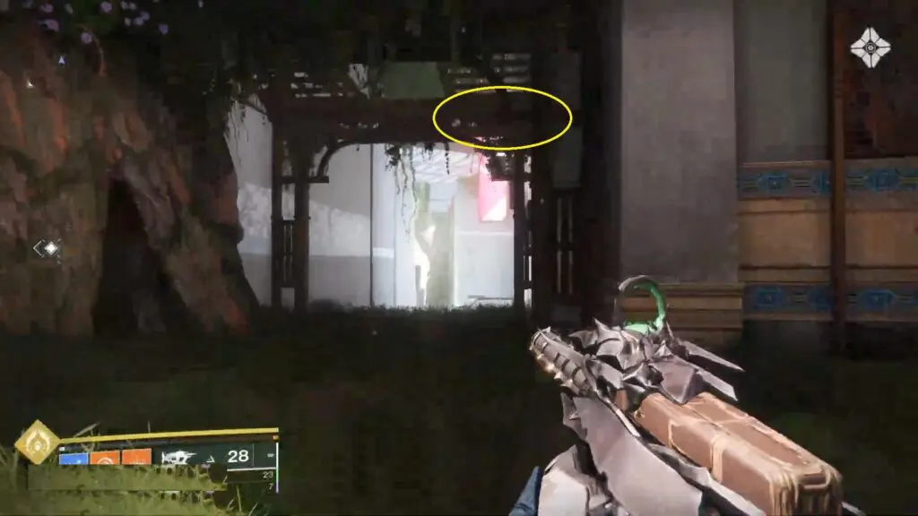 The first ghost shell can be found above the large gate with iron frames.