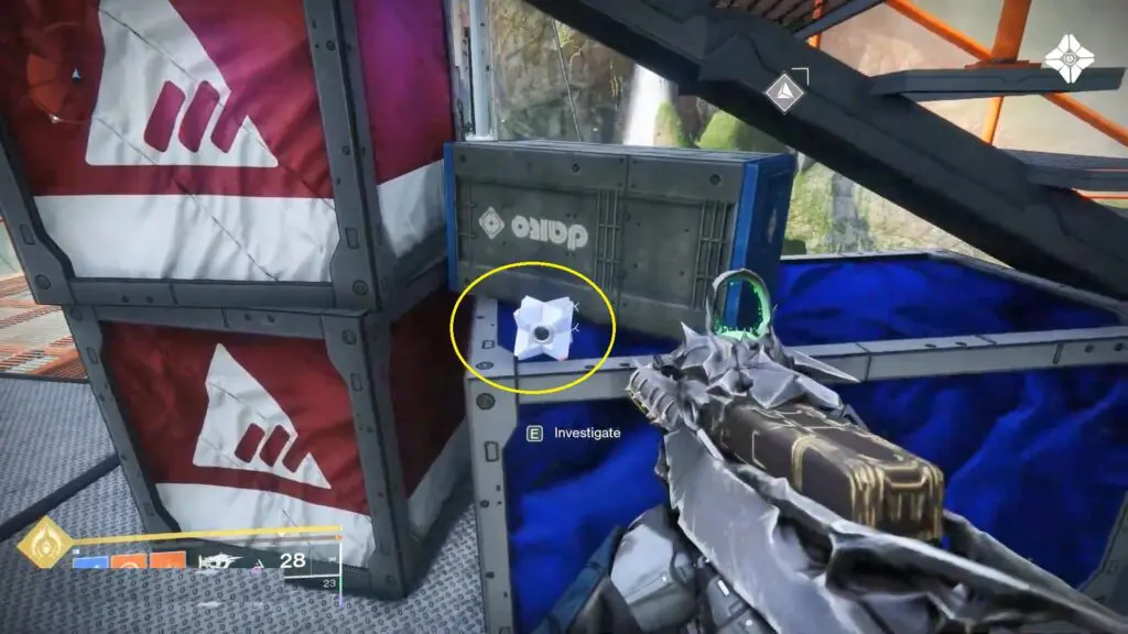 To find the second one, head to your left, pass the Daro sign, then drop down on the metal stairs. Go down the stairs to discover the ghost shell.