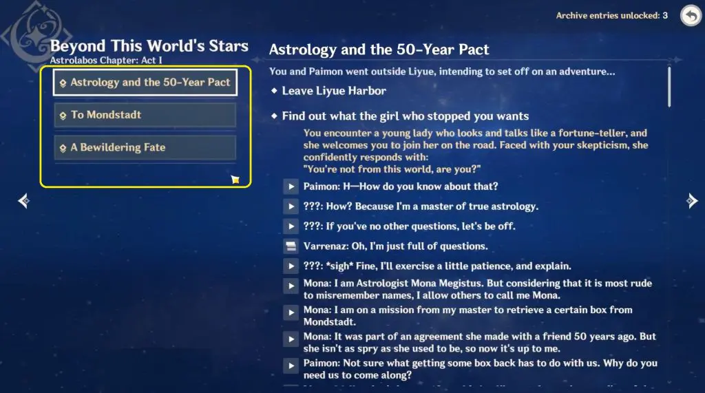 #3 Complete Mona’s Story Quest “Astrolabos Chapter: Act I – Beyond This World’s Stars”