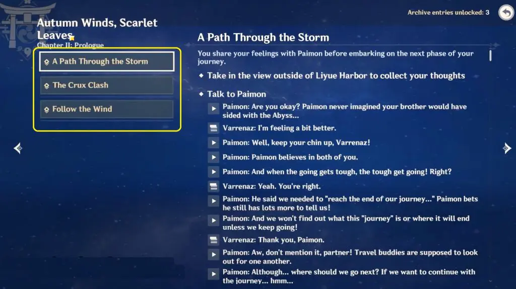 #2 Complete the Archon Quest “Chapter II: Prologue – Autumn Winds, Scarlet Leaves” (Kazuha’s Story Quest)