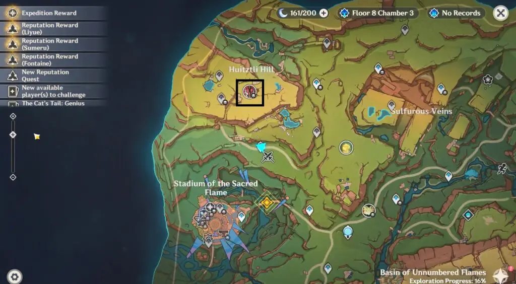 The Goldflame Qucusaur Tyrant is a new boss in the region of Natlan in Genshin Impact. This boss is located north of the Stadium of the Sacred Flame, inside a cave underneath the mountains of Huitzli Hill.