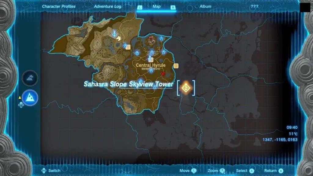 This guide shows how to unlock the Sahasra Slope Skyview Tower in the Legend of Zelda: Tears of the Kingdom, released on 12th May 2023. The location of Sahasra Slope Skyview Tower is shown in the picture below. Talk to the creature in front of the tower, and he will tell you that the door cannot be opened and he will also tell you about caves at the bottom of the hill.