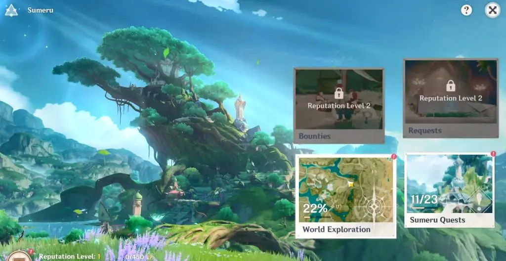 Players cannot accept Sumeru’s requests and bounties at reputation level 1. They will need to reach reputation level 2 before they can accept requests. You can reach level 2 using the below methods.