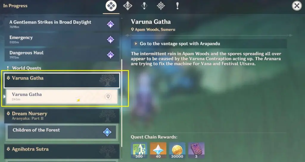 Continue further to trigger a cut scene where the traveler will interact with Arakunti after defeating the Fungi. In the cutscene, you will learn the Rhythm of Source Water. This will end the last quest A Prayer for Rain on the Fecund Land