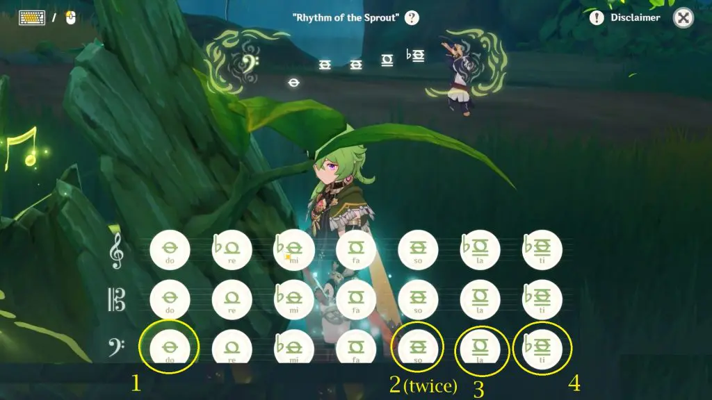 Next, follow the Elemental lights and it will take you to an inactive Dendrograna. Here you need to play the Rhythm of the Sprout as shown in the below image
