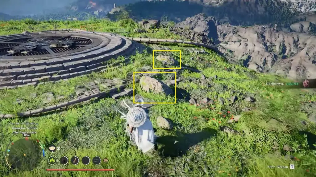 Go north of Hernand to Sage’s Peak. Climb the peak near the fast travel point and look for rocks that are not actually rocks but living creatures.