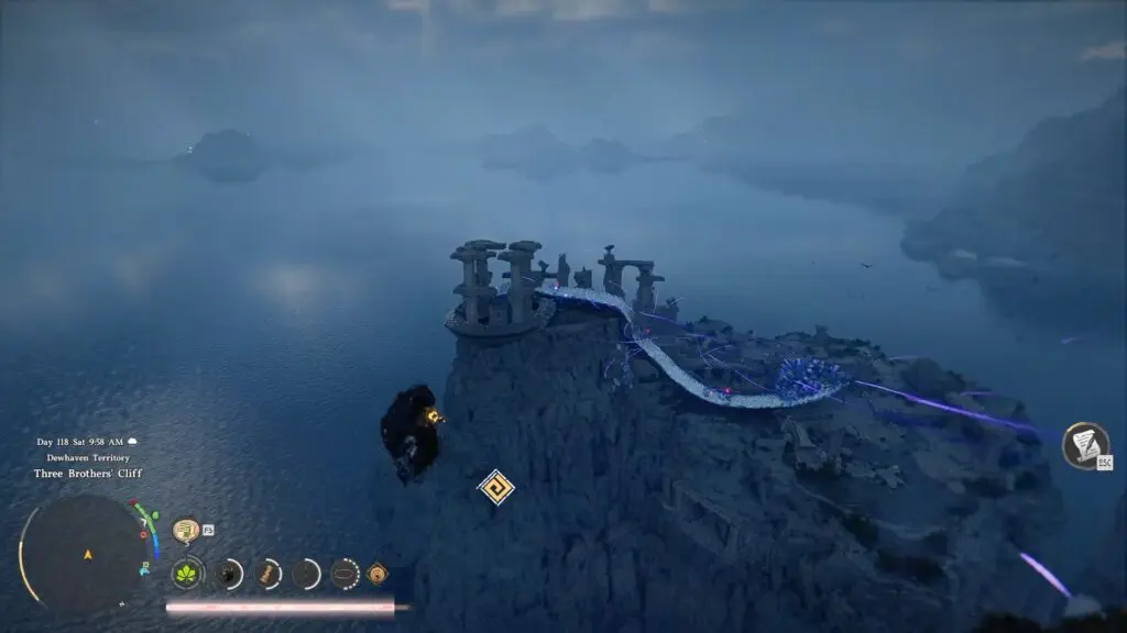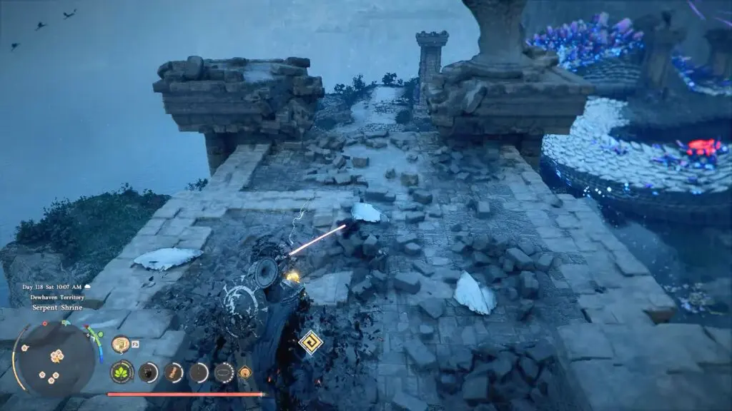 Head to the Serpent Shrine in the bottom left of Delesyia. In this area, you will find Aeserion, a large serpent dragon. Wait for the serpent to move to the lower end of its patrol path, then fly across to the island.