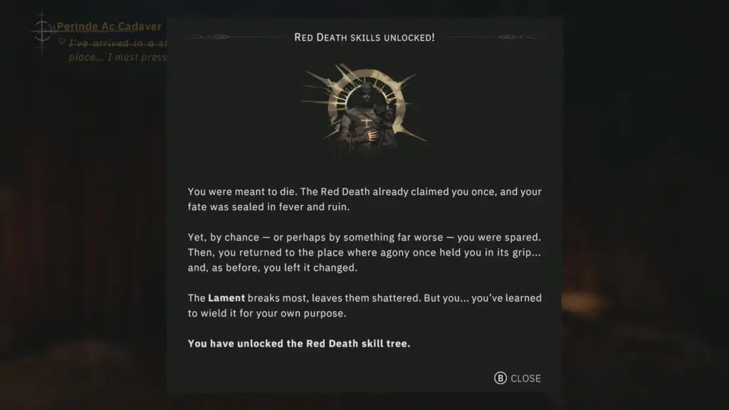 After defeating the boss, you’ll meet a mysterious character who is connected to the main story. Once the conversation ends, you’ll be transported back to the Toll House, where you will finally unlock the Red Death skill tree and receive the powerful Prophet Armor Set as your reward.