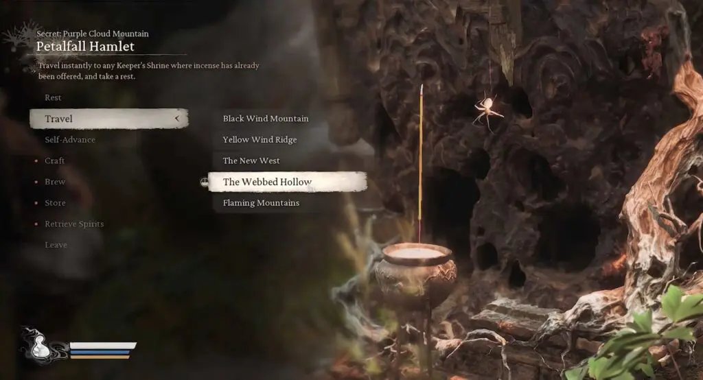 To start the quest “Daoist Mi,” the player needs to unlock the secret area in Chapter 4, “Purple Cloud Mountain” and reach the Petalfall Hamlet Keeper’s Shrine.
