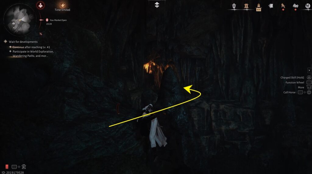 Once you lie down, you’ll be instantly transported to the Ghost Light Market, a mysterious underground tunnel system. Once you arrive in the Ghost Light Market, exit the small starting cave and immediately turn around, before tha arch gate.