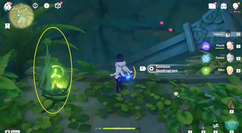 Now, summon Dendrograna and then strike the rock to reveal the Dendro Elemental Monument. Finally, press Elemental Monument one more to activate it.