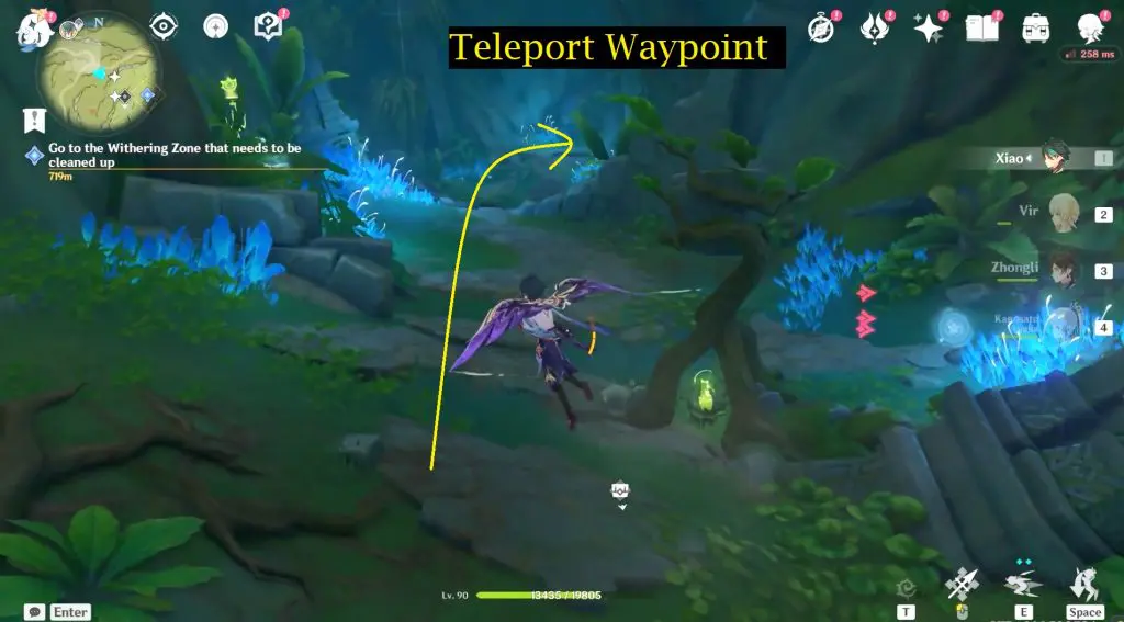 Continue to follow the path in front of the dendrograna summon point to reach the Teleport Waypoint.