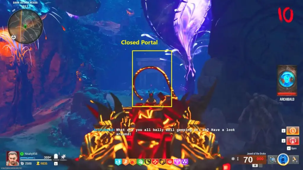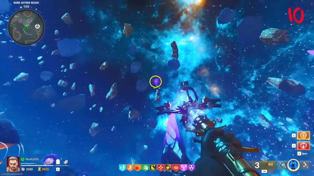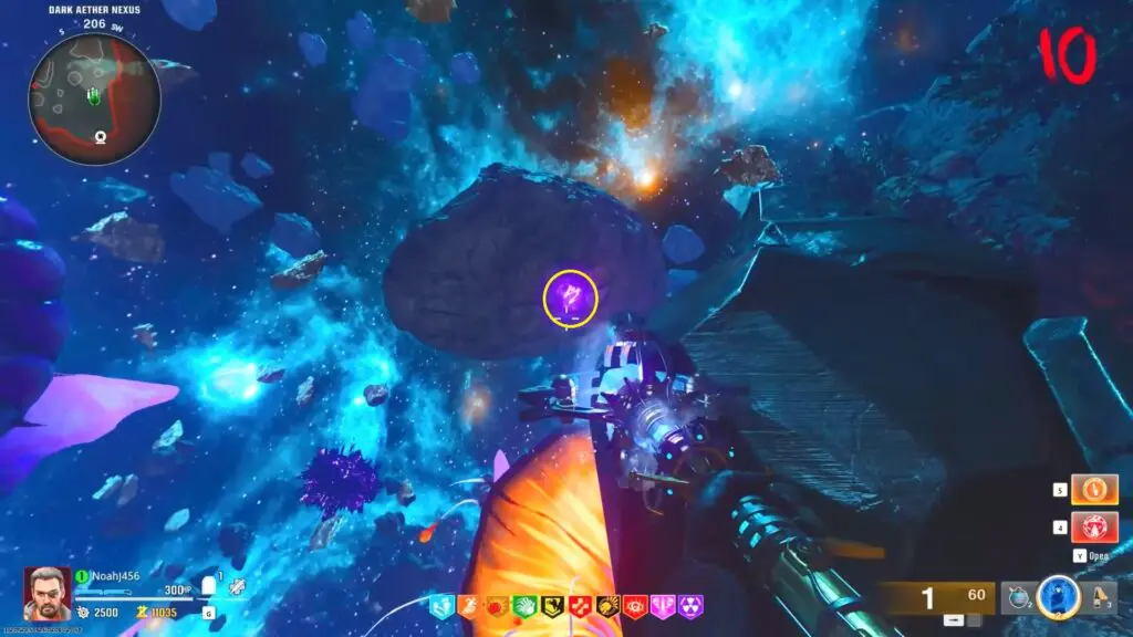 On the other side, you will find yourself on a floating rock in the sky with a purple orb in front of you. Interact with the orb and follow it to start a lockdown.