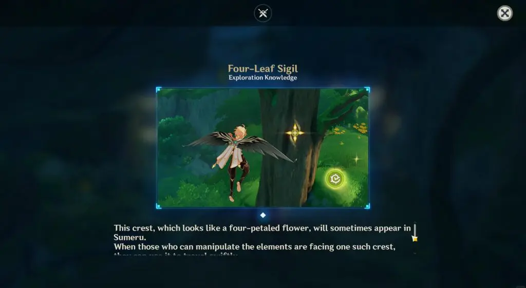 Four Leaf Sigil: This crest, which looks like a four-petaled flower, will sometimes appear in Sumeru.