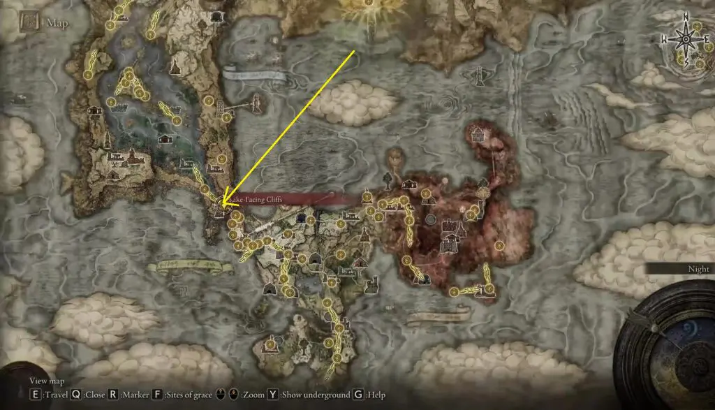Fingerprint Grape will be dropped by Festering Fingerprint Vyke. You will find him at the location shown in the picture below. To reach the marked location, go south from the Grand Lift of Dectus to reach Frenzied Flame Village. From there, go northwest to reach the marked location. when you reach there, you will be invaded by Festering Fingerprint Vyke. Kill him to get the Fingerprint Grape.
