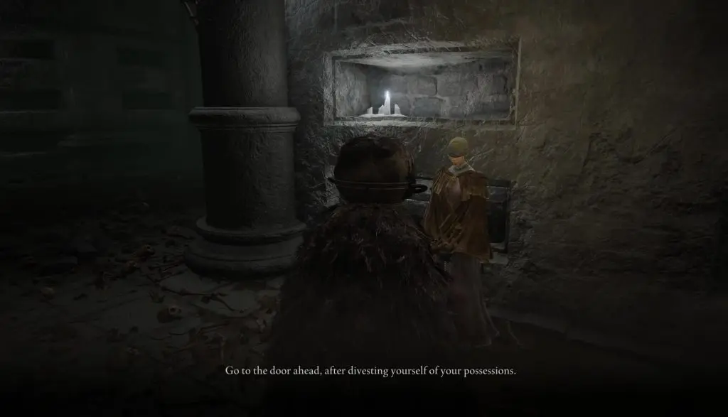 Unequip all your weapons, armor, & items. Then interact will the door ahead as shown below. After a cutscene, you will get branded by the Frenzied Flame.