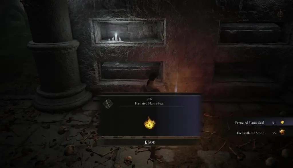 Now finish the game. When you go to interact with the stone statue at the end, it will show “Become the Lord of Frenzied Flame”. Interact with the statue to get the Lord of Frenzied Flame ending.