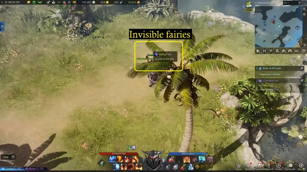 As the quest start, you need to track down three invisible fairies that are hiding somewhere on Lullaby Island. The singing fairies are at the location indicated below on the map.