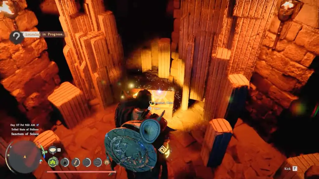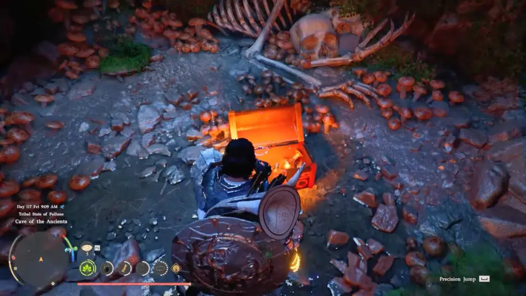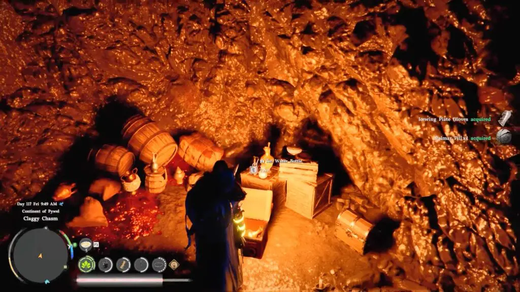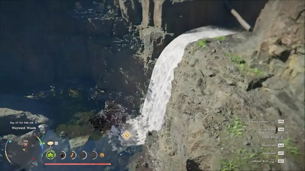 Enter the cave hidden behind the waterfall. Use your dash or stab skill to move through the water and get inside. Once you’re in, open the chest to collect the gloves.