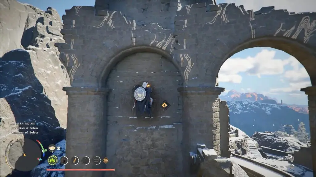 The boots are found near the Sanctum of Solace in Pauline. Once you reach the location as marked on the map, look around to find the large structure in the area and climb up to it.