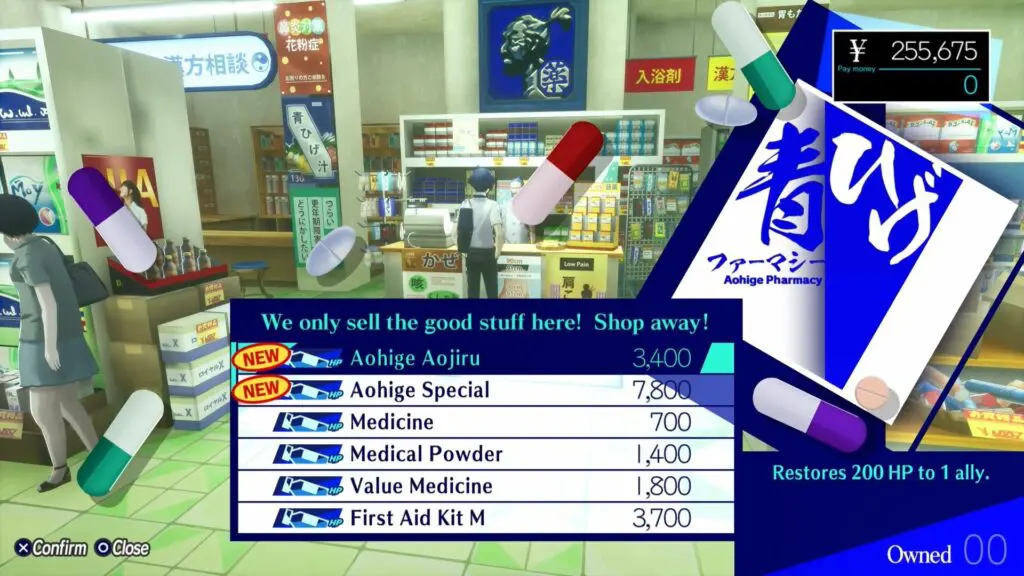 Return to Aohige Pharmacy with Yagen, who will then sell True Aohige Aojiru for 3,400 yen. Go back to Elizabeth to end the quest.