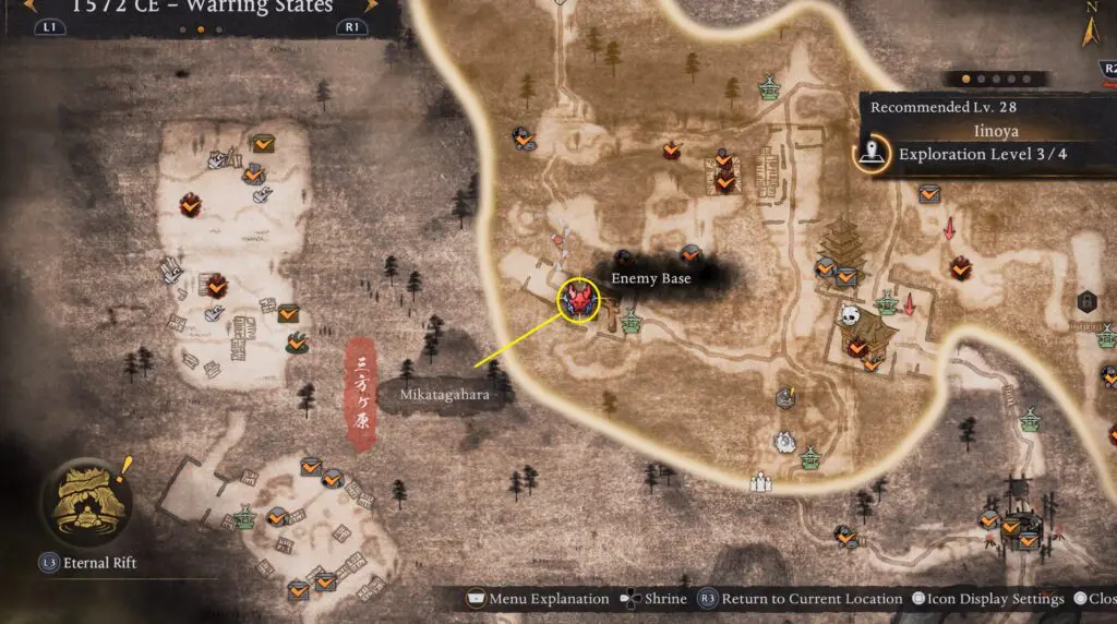 This enemy base is located in the southwestern corner of the map, near the Great Ginkgo Approach Shrine.