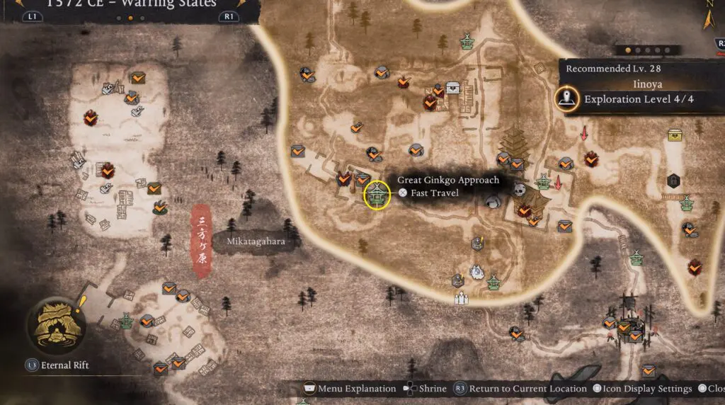 The location of the Great Ginkgo Approach Shrine is shown below.