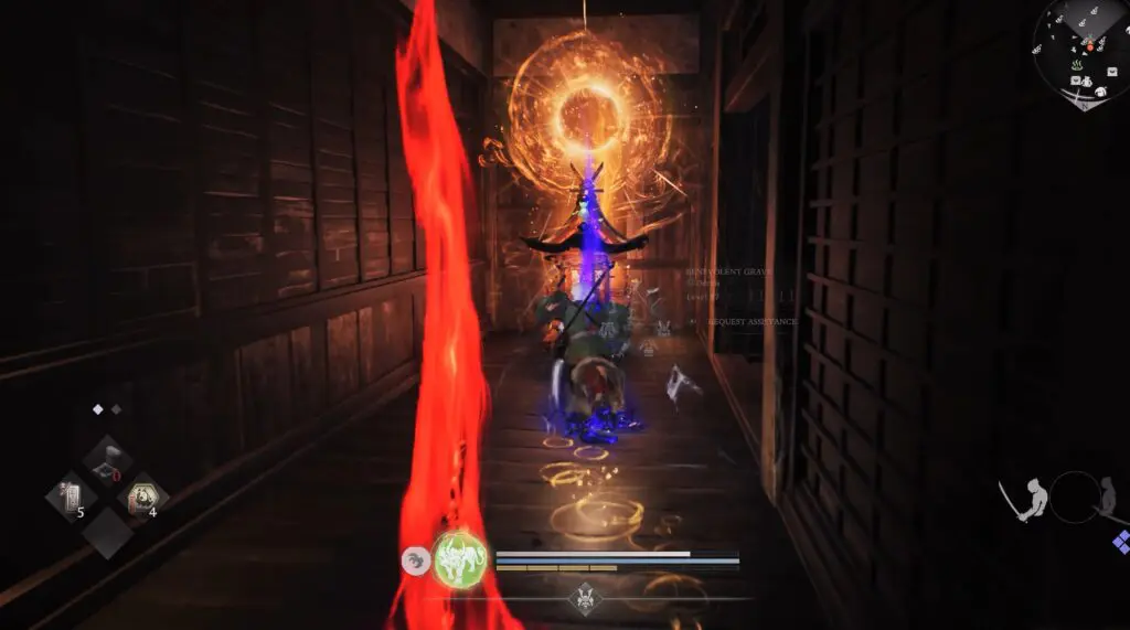 It is located in the western part of the Ryotan Temple area. Refer to the location shown below. Enter the building and climb the ladder to reach the third floor. Open the chest to obtain the Samurai’s Cloak. An NPC will appear near the chest. Interact with them to obtain additional skills.