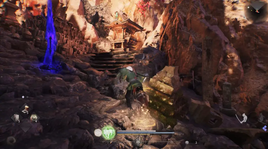 Spirit Vein #2 is located north of the Iinoya Pass. You can also find Scampuss #1 on a ledge by the side of the cliff. Chase the Scampuss #1 to obtain Ninja’s Locks.