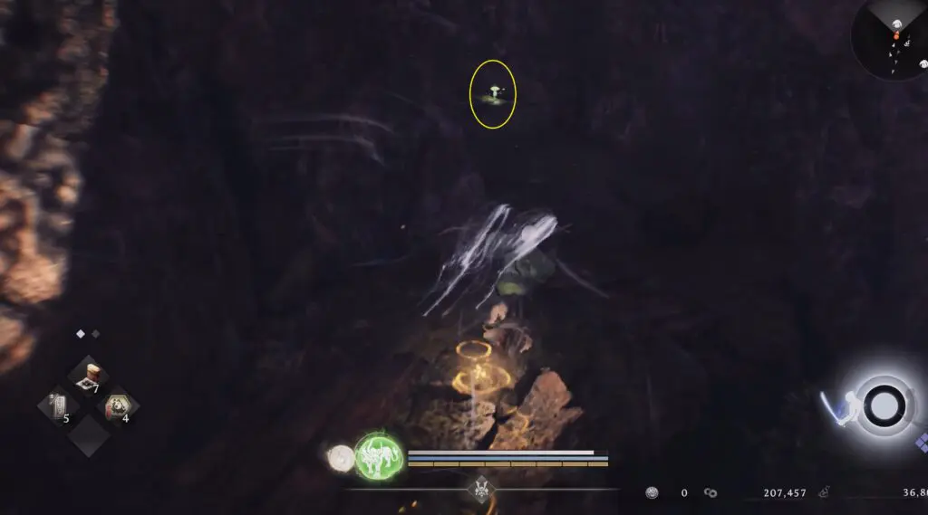 Kodama #4 can be found at the edge of the cliff, above a ravine near a tree.