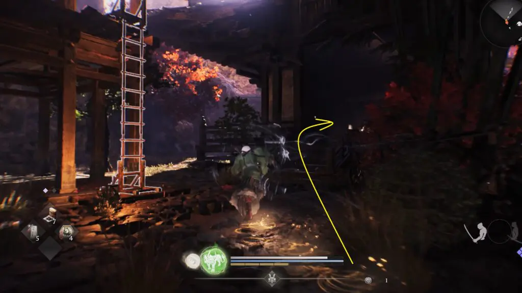 Enter the same building where you found the previous collectible, exit from the other side, then enter the next building to find Kodama #6.