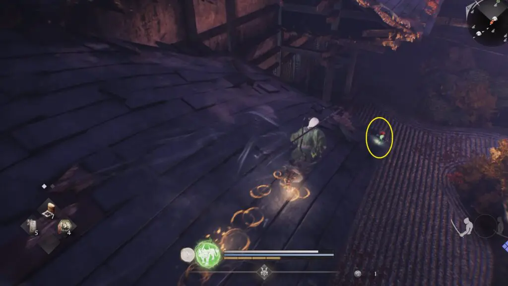 It is located in the western part of the Ryotan Temple area. Refer to the location shown below. Enter the building and climb the ladder to reach the second floor. Exit through the broken wall, walk along the roof of the nearby building, then head right to find Kodama #8