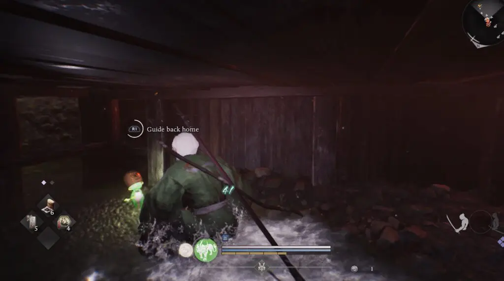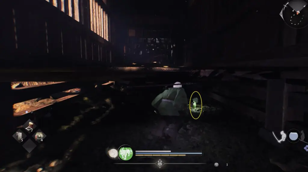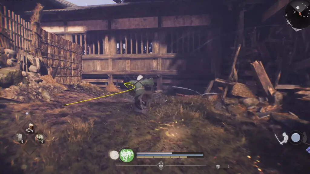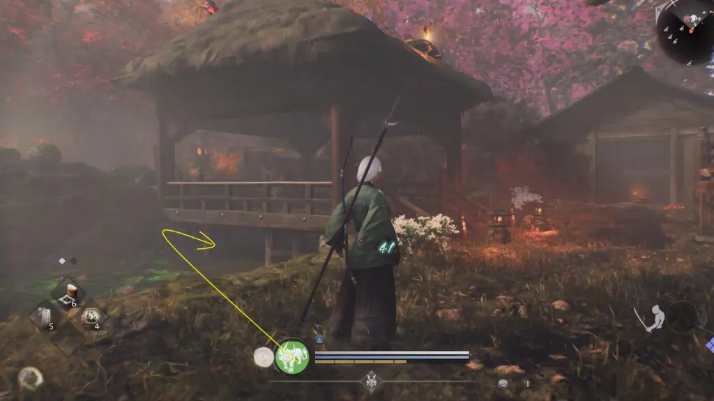 Head to the location marked on the map and look for a nearby building. Go under the hut to find Kodama #10 hiding there.