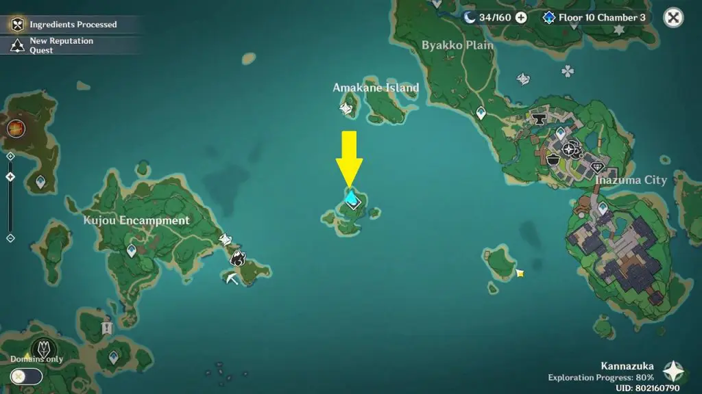 The luxurious chest is on an island east of Kujou Encampment and south of Amakane Island as shown in the picture below. You will need to break all the pots on the island for the luxurious chest to appear. The second picture below shows the location of all the pots on the island.