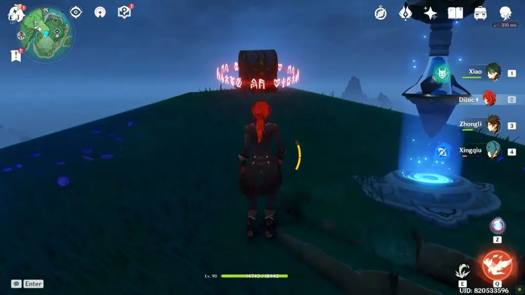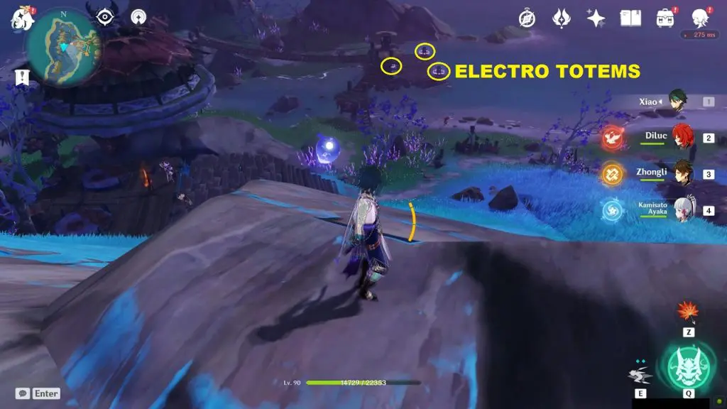 Once you have unsealed the electro totems by defeating clearing the Hilicurls camps, hit them with an electro attack to activate them. When the three electro totems are activated, a boss will appear. Defeat the boss and a luxurious chest will appear at the center of the platform with the electro totems.