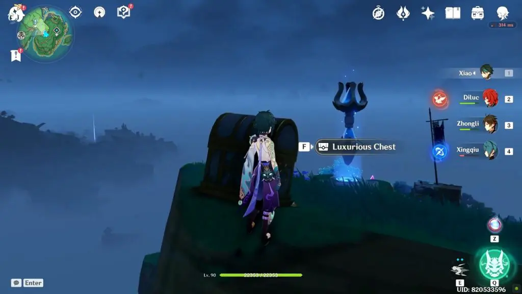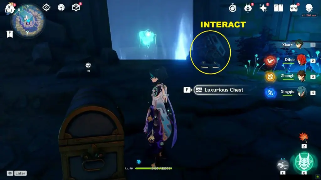 To unlock the chest, you need to approach it from behind. You have to place yourself appropriately behind the chest for the option to open the luxurious chest to appear. If you are finding it difficult to place yourself in the correct position, simply jump down and climb the cliff from behind. This way you will be able to stand right behind the luxurious chest as shown in the picture below.