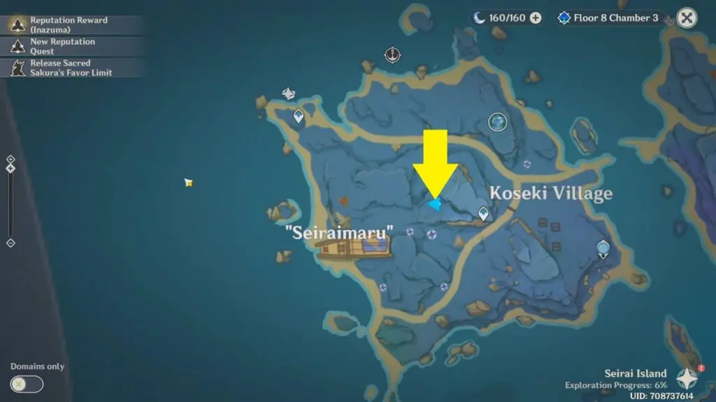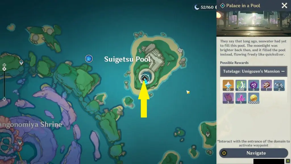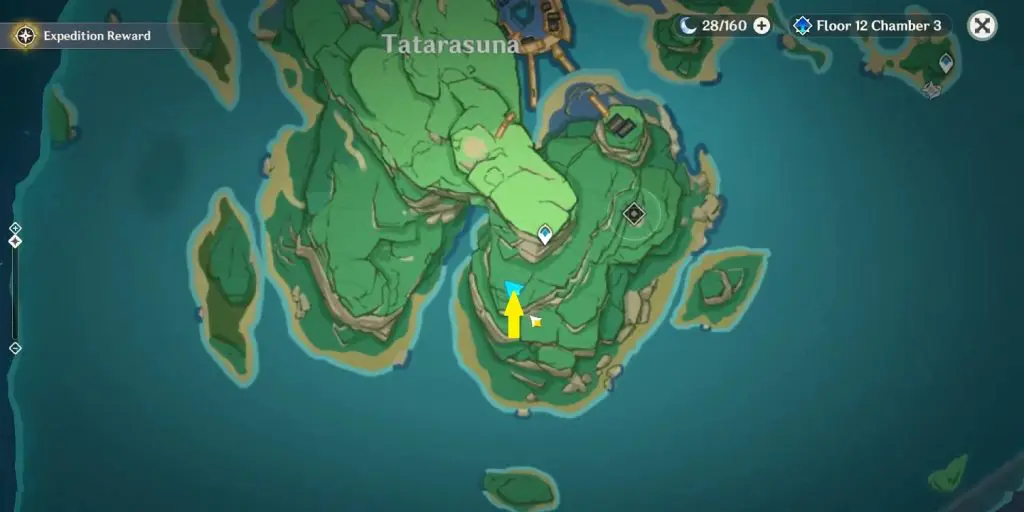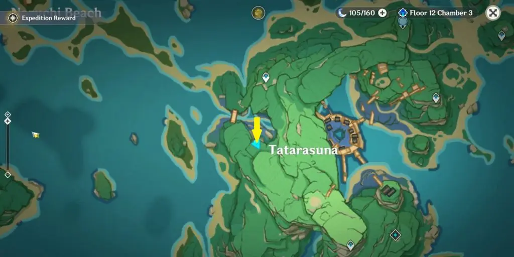 You will find the second Shrine of Depths of Narukami Island on a small island on the north side, northeast of Ritou at the location as shown in the picture below. You will get a luxurious chest inside the shrine. Click here to see how to get Shrine of Depths Keys.
