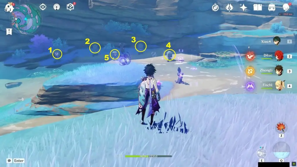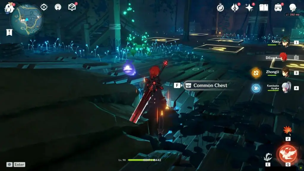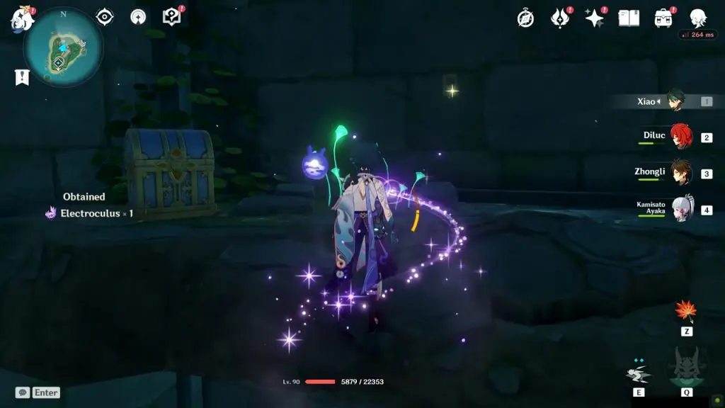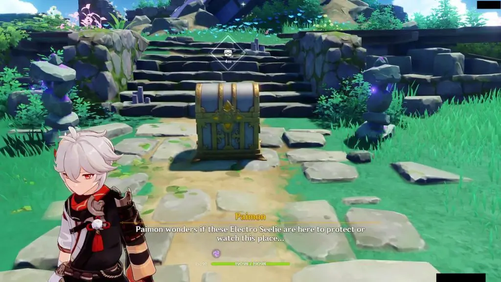 Start following the Electro Seelie from the previous thunder location. Keep your eye on the Electro Seelie as it will start moving very fast from this point. Keep following it and shortly it will reach its destination as shown in the picture below. This will reveal a luxurious chest and two precious chests.