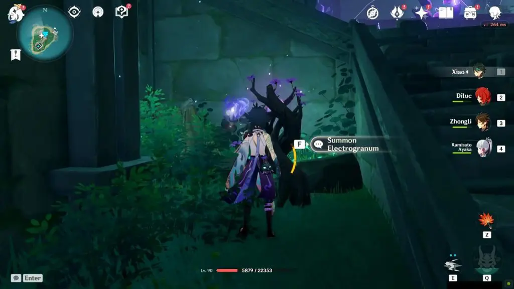 On the south side of the barrier, you will find a sword as shown in the picture below. Interact with the sword to start a challenge. Defeat the enemies within the time limit to complete the challenge. An exquisite chest and an Electro Seelie will appear on the completion of the challenge. Chase the Electro Seelie until it reaches the Electrograna plant.