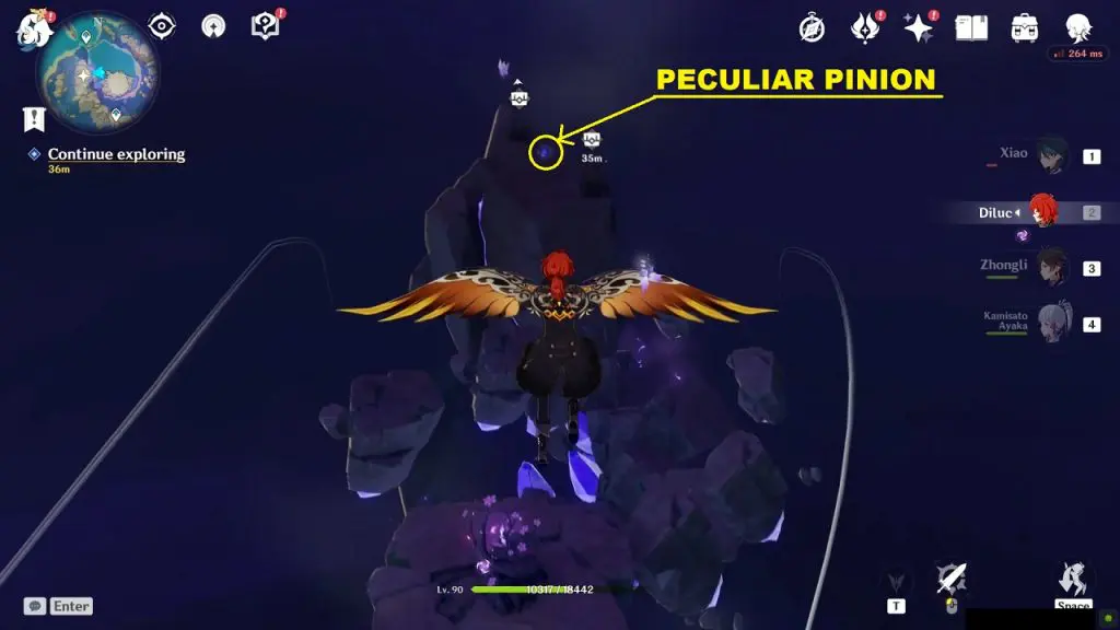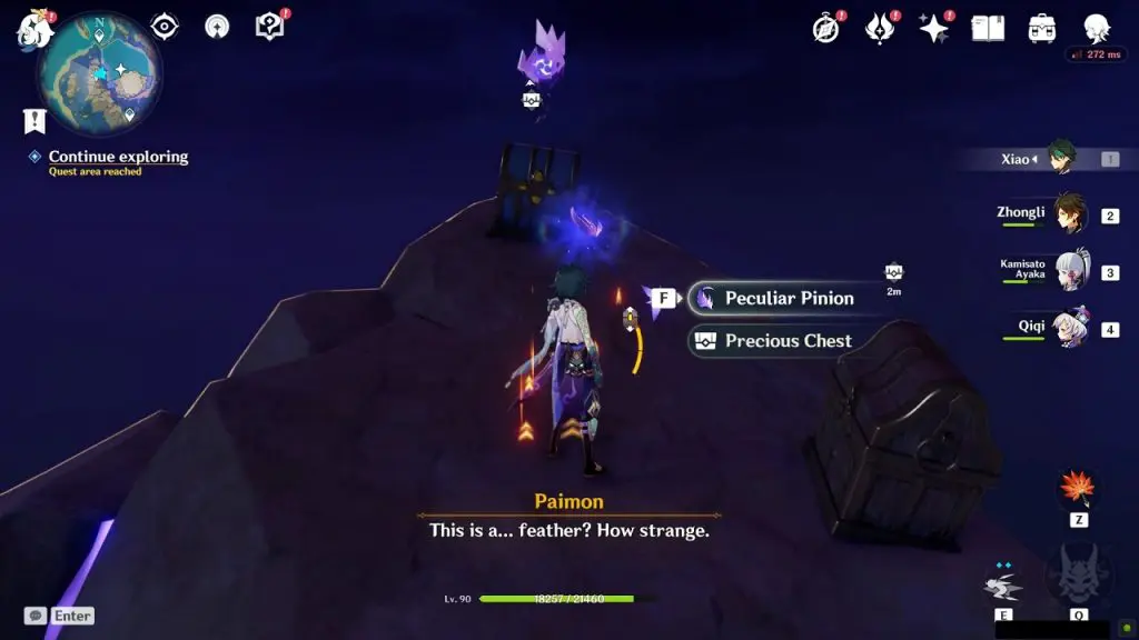 During the ‘Seirai Stormchasers Part 4’ world quest you will have to collect Peculiar Pinion. You will find the Luxurious Chest on the same platform where you find the Peculiar Pinion.