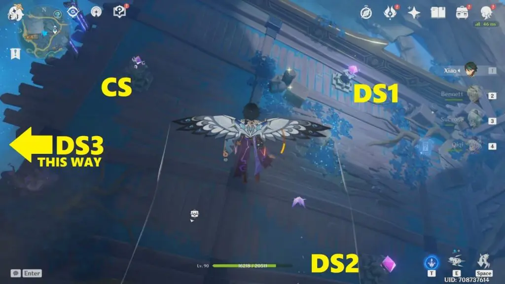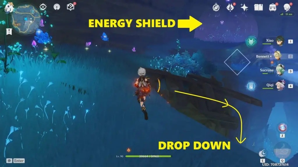 Key to Some Place #1 is in the northeast part of Tatarasuna (check the image below for the exact location). The common chest containing the key is in the broken building inside the purple-colored dome (shield). You’ll need electro to cross the shield (enter the dome). There is an electrogranum plant nearby and is pretty hard to miss. Cross the shield –> go downstairs –> take a sharp left and jump down onto the wooden platform –> enter the narrow space to get to the common chest.