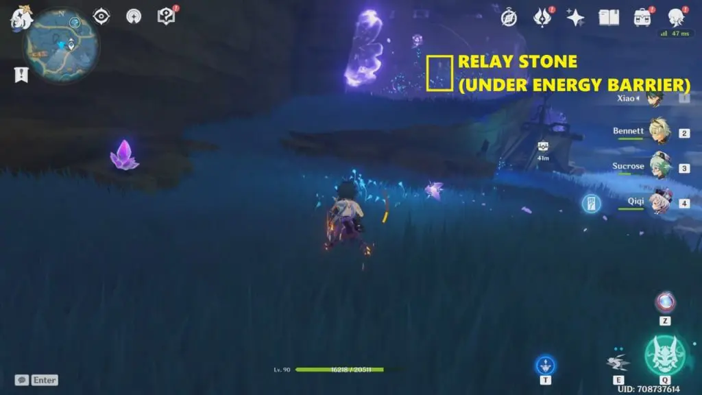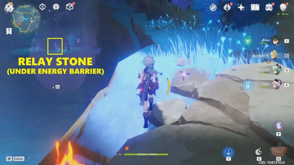 You can easily spot 2 energy shields in the nearby cliffs. There is a relay stone under both these energy shields. Enter these energy shields and collect both the relay stones. You need to be charged with electro to cross the energy shield. Summon electrogranum (from the electrogranum plant near relay stone 1) before entering the energy shields. After collecting all the three relay stones, head to the wrecked ship and complete the circuit puzzle.