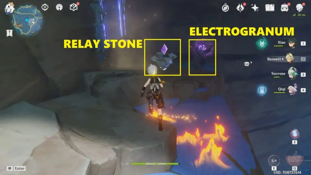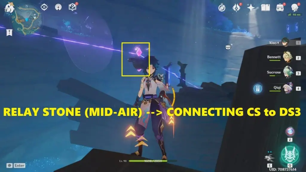 For this step, you must yourself act as a Relay Stone [NOTE: You can act as a connector/conductor if you’re affected by Electro]. First, get hit by the shockwave static relay stone is producing so that you get affected by Electro. Now, glide towards the Cumulation Stone and stay mid-air (where the SEELIE is) to connect the two stones. Once the connection is established and the circuit is complete the exquisite chest will spawn near the static relay stone. Go and Loot it!