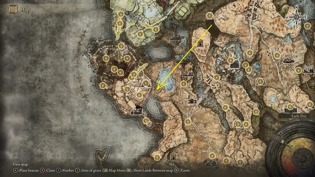 Go to the location marked in the pictures below to see the ghost. The ghost will disappear in a few seconds, dropping the Serpent Crest Shield for you to collect.