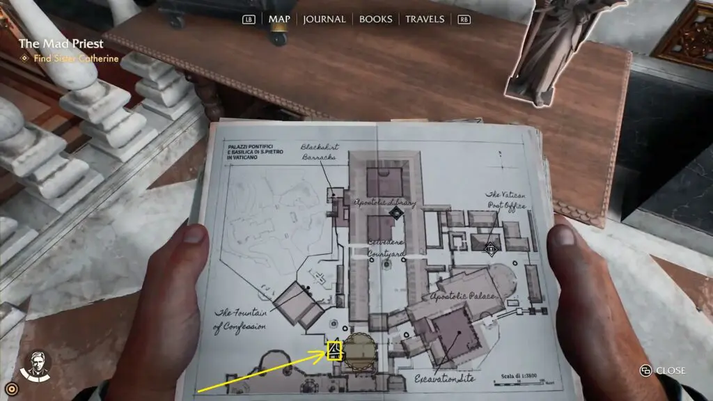 You can start the Secret of Secrets mystery in the upstairs office of the Sistine Chapel. The Sistine Chapel is on the southern side of the Vatican City map.