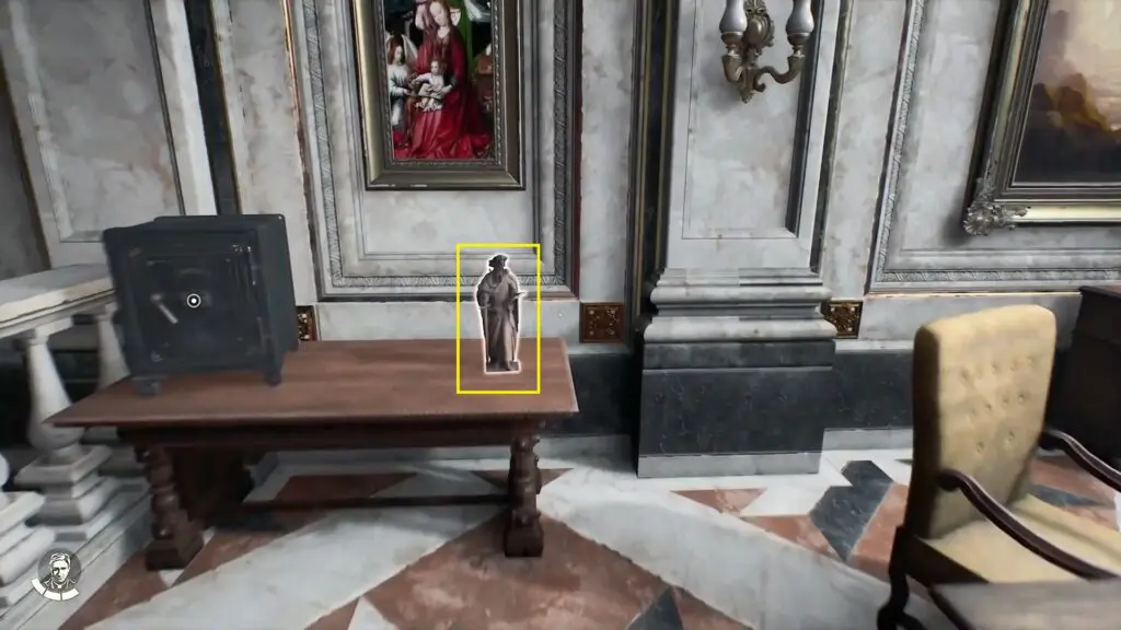 The code to open the safe is mentioned in another note in the room. Nicoletti’s Letter. Peter with the key, then Paul with the sword.