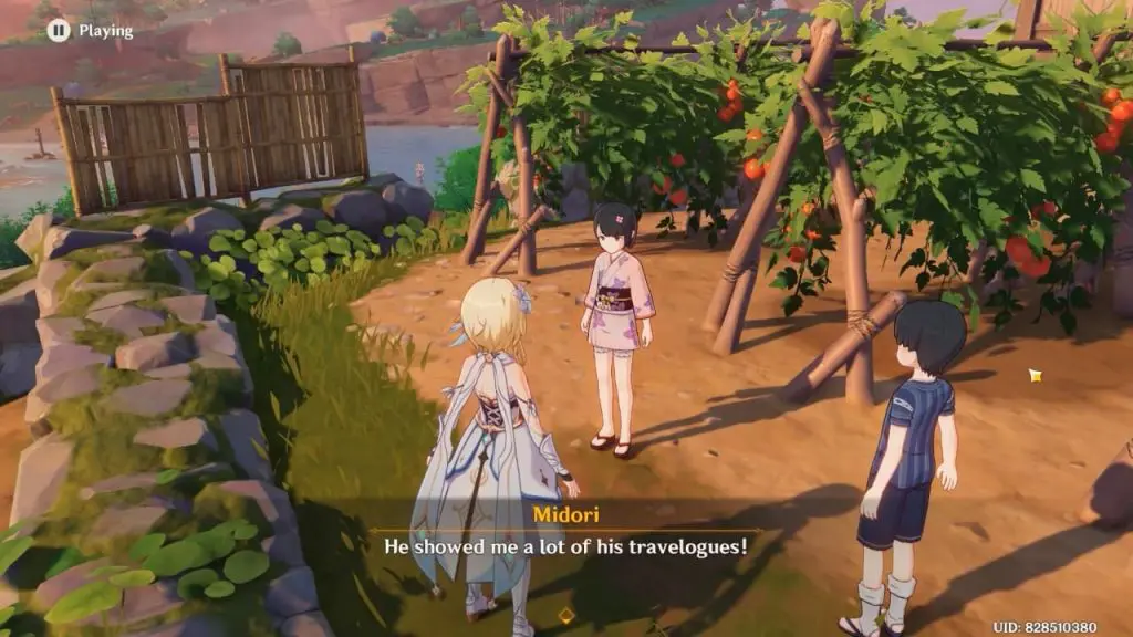 Midori is a small girl who is looking for stories to share with her friend. To begin the “International Travel Log” quest, speak with her in Inazuma City. You can find her standing near the Tomato plantation on the northern outskirts of Inazuma City. You can refer to the below map to find the Midori location. This article shows how to complete the ‘International Travel Log’ world quest and aid Ramsay finish his story.