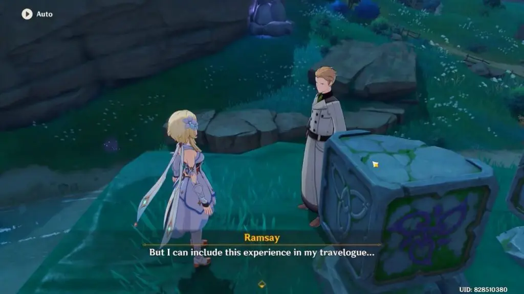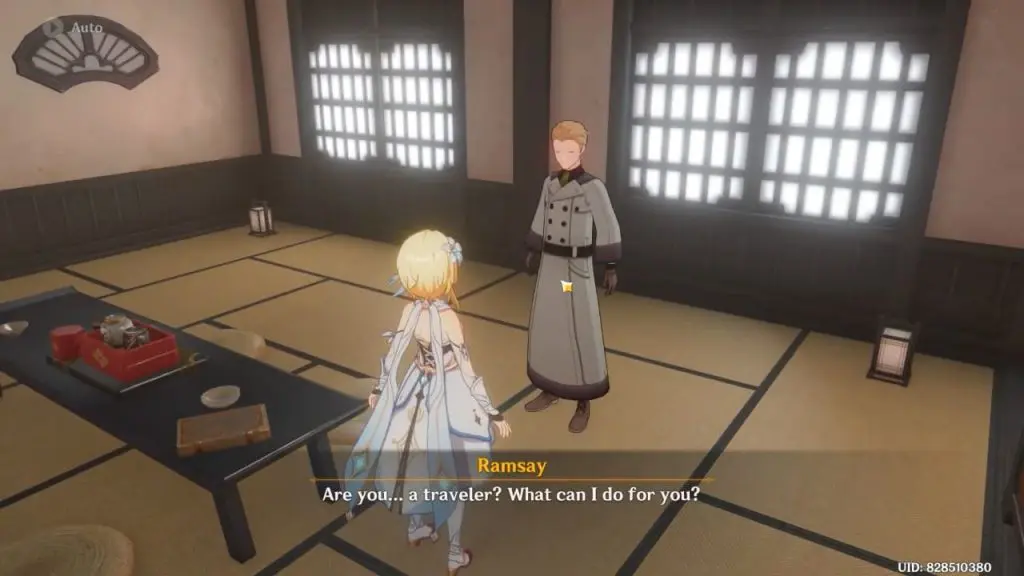When you enter the teahouse, you’ll find Ramsay in one of the rooms. While speaking with Ramsay, he will admit that none of the facts in the travelogues are true. Even though some locations and characters are based on reality. The majority of the content is based on his imagination. Ramsay also informs travelers that the man in the hallway has bad intentions toward him. He invites you to accompany him outside in search of inspiration.