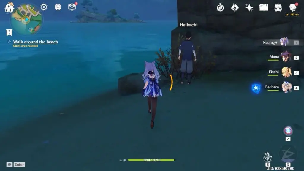 You’ll be asked to walk around the beach. Talk to Heihachi who is hiding behind the rock. Talking to him will trigger the next part of the quest.